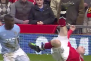 英超30年的第一名场面!鲁尼上演惊世倒钩笑傲曼市德比!
